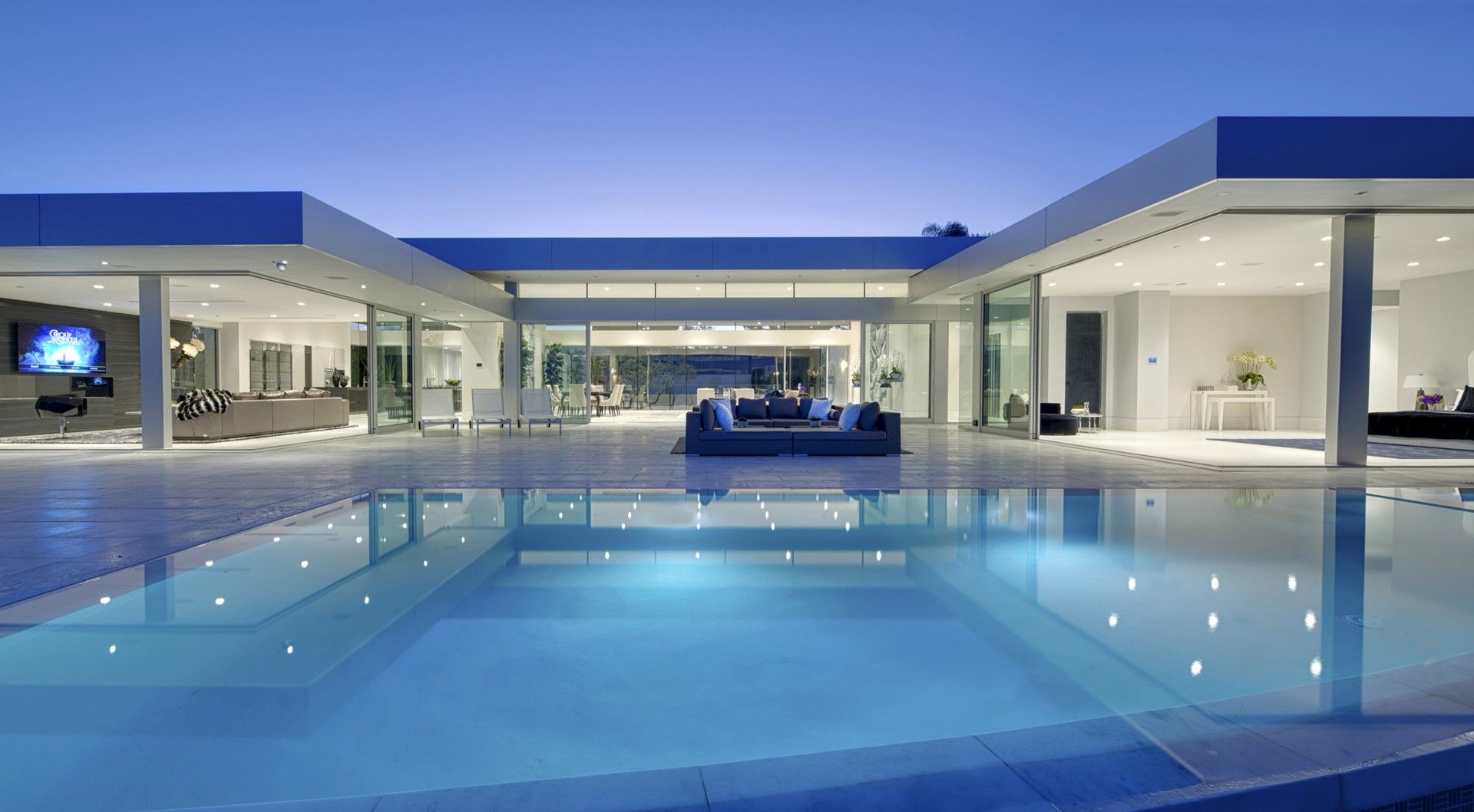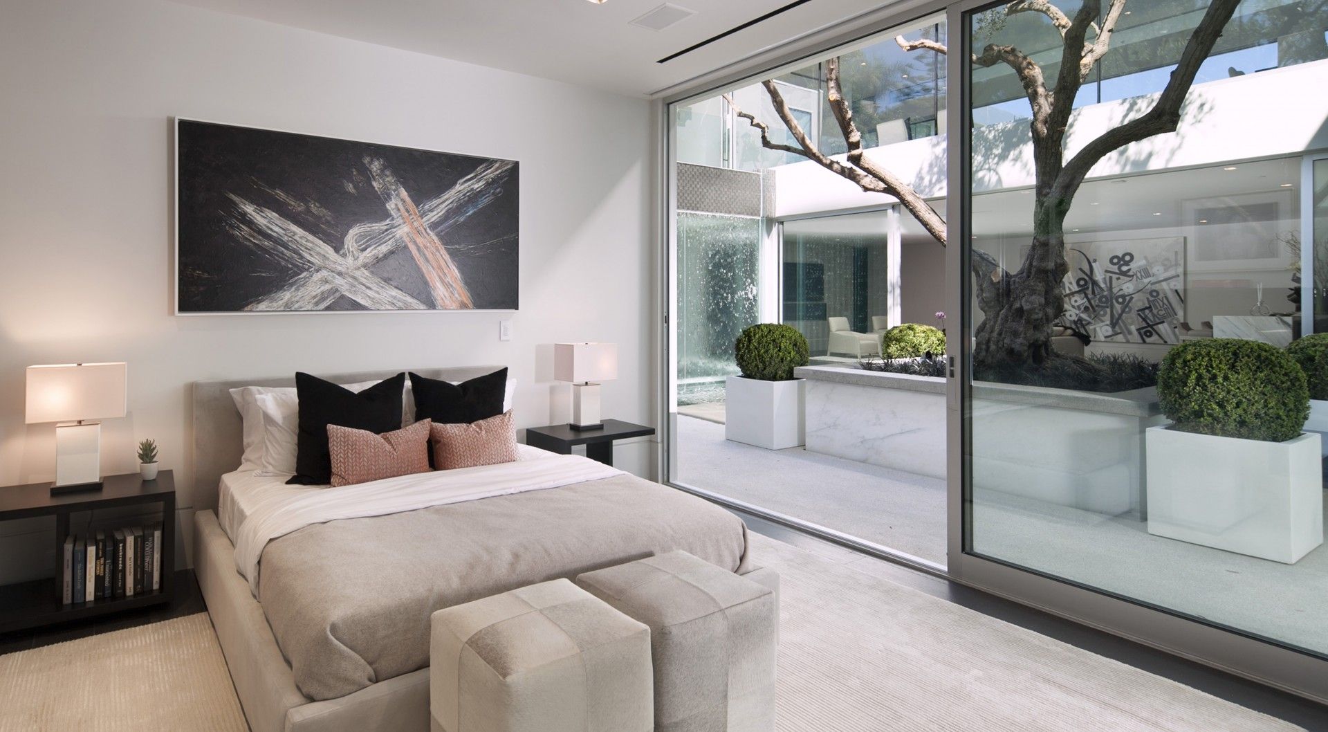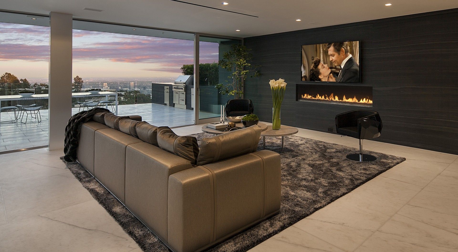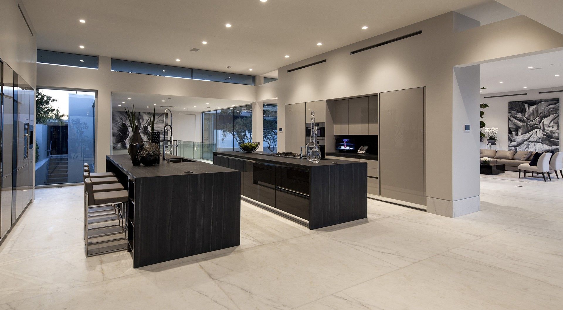 Located in the Trousdale neighborhood of Beverly Hills where all proposed work must take place without disturbing existing slopes, the challenge for this design is to find ways to create light for the lower level. Here we have created a light well which separates the drive court from the house itself and allows for an entrance across a water feature that cascades over glass to the atrium below. Landscaped with glass on four sides this allows light to the entertainment areas, gym and secondary bedrooms leaving more room upstairs for the rear yard and swimming pool. The upper level contains the master and two additional bedrooms, living room, family, dining and kitchen.