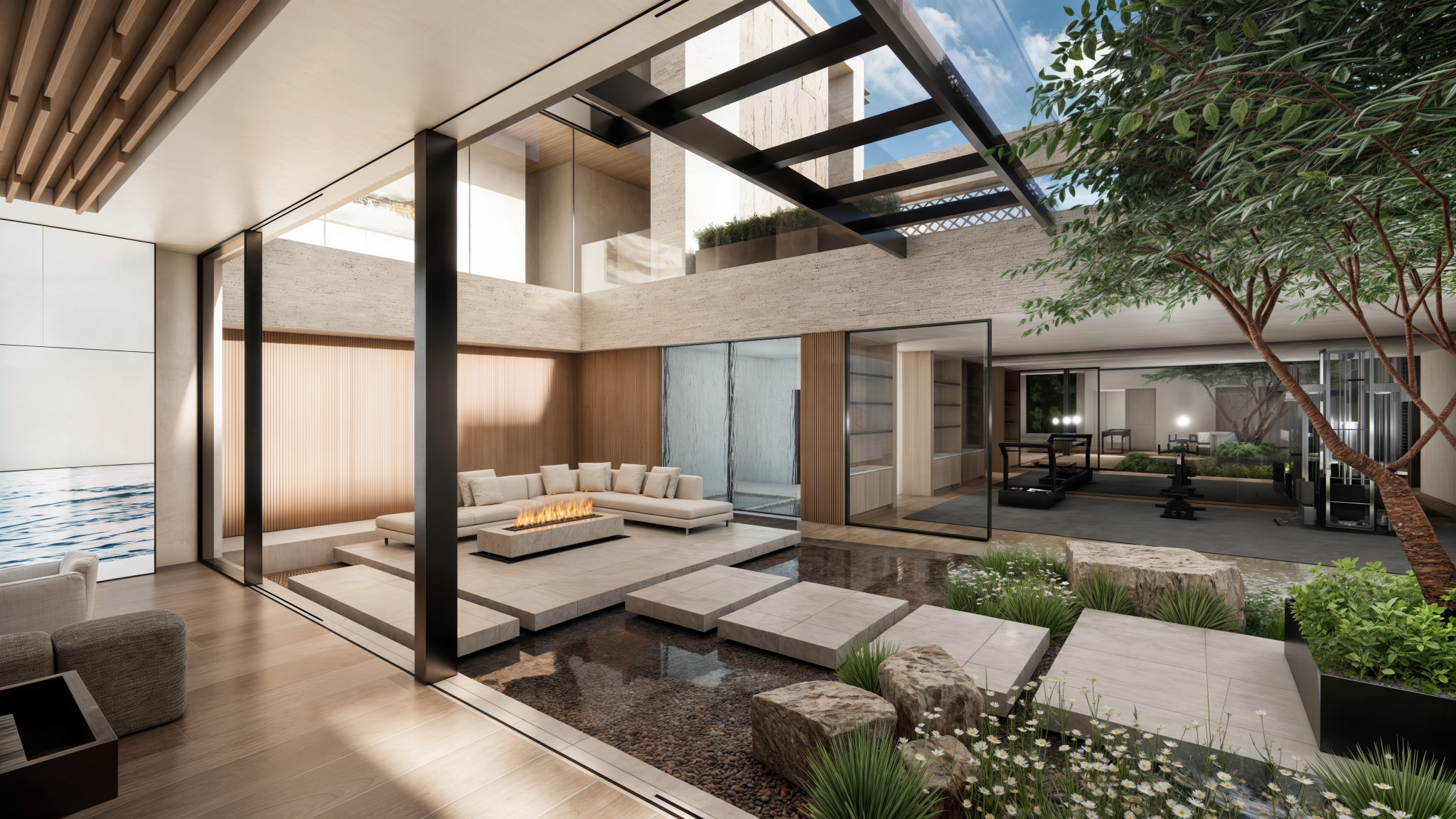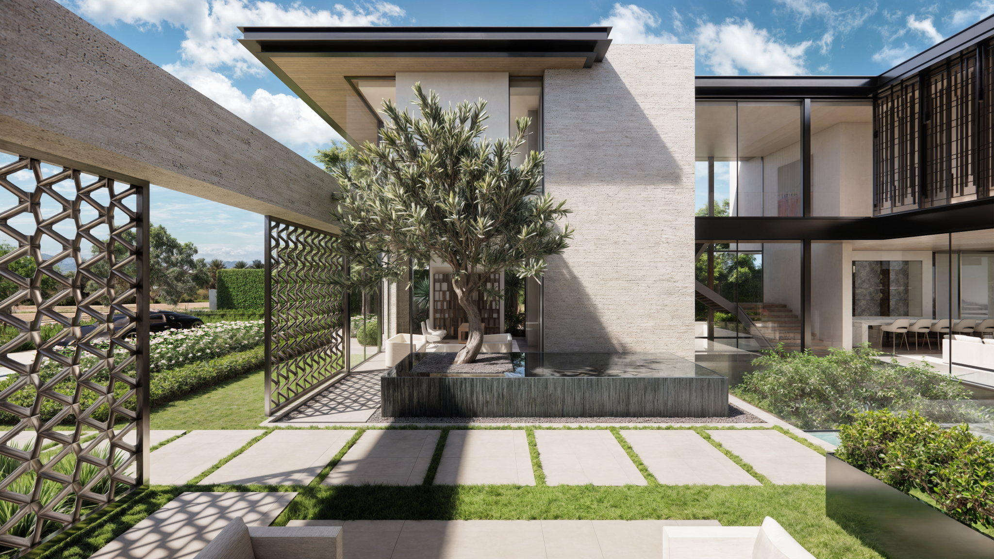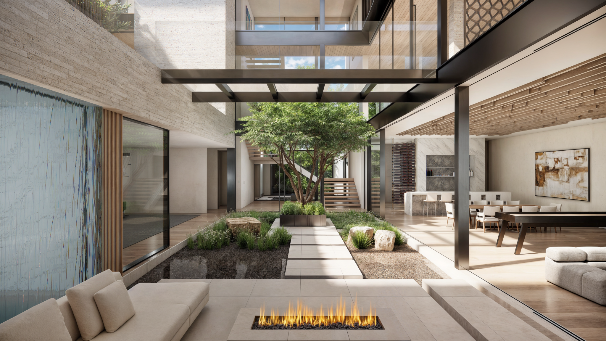 The house has a warm contemporary palette with splashes of color that reflect the owners' personal style. The home is an example of how modern design can embrace the natural environment while offering a comfortable, versatile space for both family life and entertainment. The use of multiple courtyards, the focus on light and open spaces, and the seamless integration of indoor and outdoor areas all contribute to the home's design strategy.