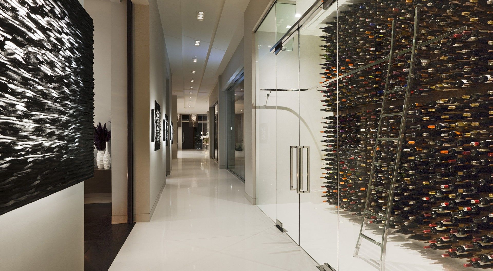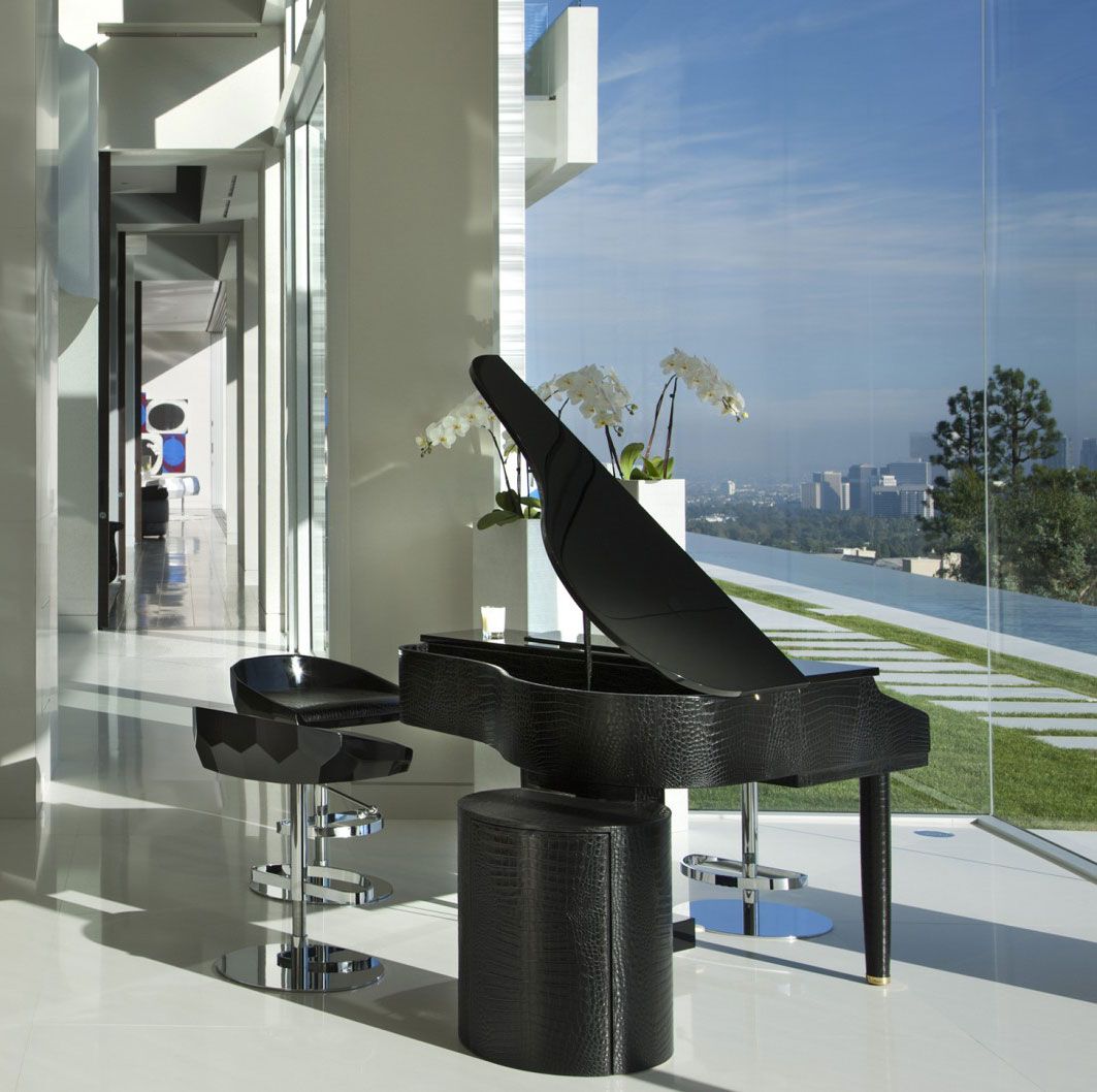 Inspired by Southern California’s temperate climate and the site’s spectacular city views, this 14000-square-foot house residence is designed to be an entertainer’s urban haven. The very narrowness of the lot inspired us to create a grand hallway that acts as a spine for all the main rooms allowing them high ceilings with abundant natural light and oversized windows/doors that open to the outdoors, blurring the boundary between living spaces and patio gardens. Gray striated marble walls emphasize the length of the corridor. Multiple indoor and outdoor water features-along with a material palette comprised primarily of gray and cream stone, metals, glass and themes of transparency, light, and fire lend warmth to the home.
